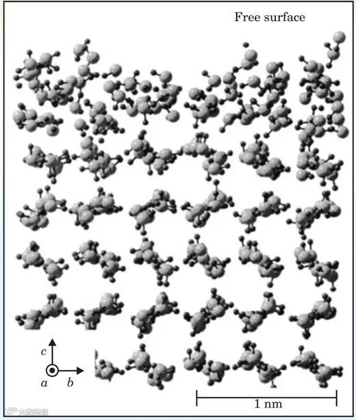 分子动力学模拟计算-20 °C下预熔水膜结构。图片来源:J. Chem. Phys. [7]