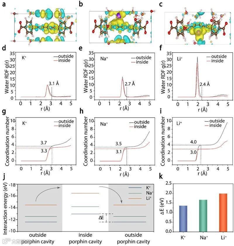 图3. 离子选择性机理的密度泛函理论分析。