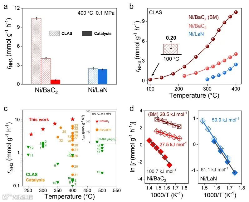 图2. Ni/BaC2及其Ni/LaN的催化性能研究。