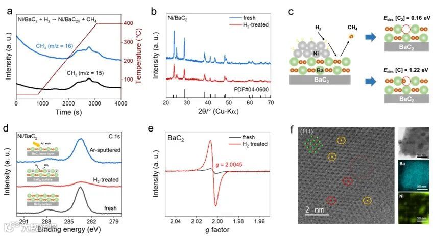 图3. Ni/BaC2催化剂C2缺陷表征。