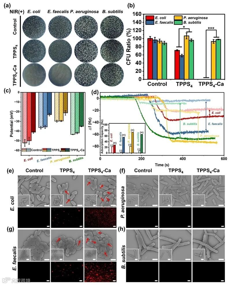 图4. TPPS4-Ca的体外光热抗菌活性及作用机制。