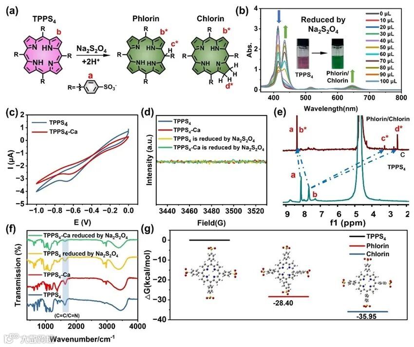 图2. TPPS4与TPPS4-Ca的化学还原表征。