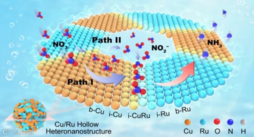 近日,重庆大学黄建峰教授课题组在J. Am. Chem. Soc.期刊上报道了一种通过柯肯达尔效应(Kirkendall Effect)构筑的Cu/Ru异质界面空心纳米结构催化剂。该结构利用界面效应、串联催化和纳米限域的协同作用,有效降低了硝酸盐电还原制氨过程中的能垒并加快中间体转化。在eNO3RR制NH3反应过程中,该催化剂实现了高达97.4%的法拉第效率、152.6 mg h−1 mgmetal−1的产率和40%的能效,性能在电催化领域达到领先水平。研究不仅揭示了Cu/Ru界面的活性本质和机理,还提出了一种通用的设计策略,为开发高效可持续的电催化转化体系提供了新思路。