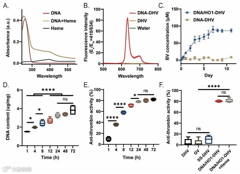 图3. DNA/HO1-DHV的BV合成与抗凝血酶性能评估