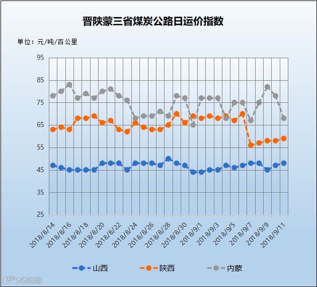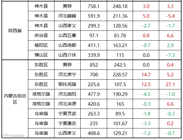 【陕西省】随着煤价上涨,陕西地区在产煤矿销量较好,矿上拉煤车较多加之受到交通拥堵的影响,陕西地区发往山西地区运价上涨3-5元/吨不等。