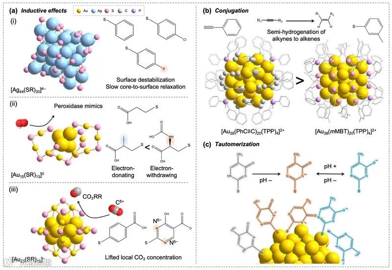 图3. 金属纳米团簇中配体内电子效应调控的示意图。