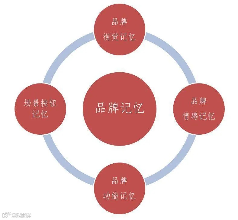 根据对消费行为决策的研究与分析,品牌记忆包含4大方面,即品牌视觉记忆、场景按钮记忆、品牌功能记忆、品牌情感记忆。品牌4大记忆相互依存,而非相互孤立和割裂。有效的品牌视觉记忆(视觉锤)是基于有效的场景按钮,而有效的场景按钮则取之于品牌在功能及情感层面的定位。