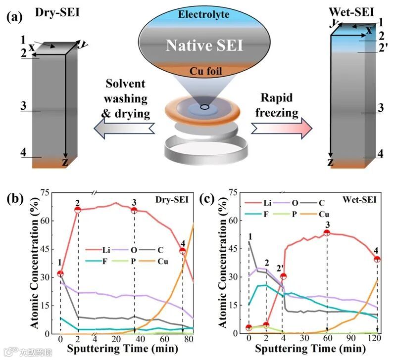 图3. Dry-SEI和Wet-SEI的深度剖析结果解析