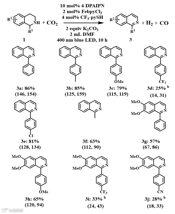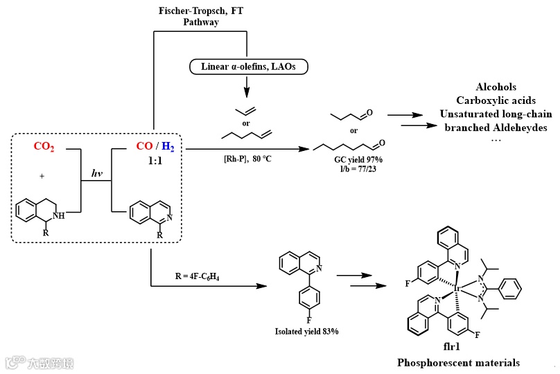图1. 还原产物合成气以及四氢异喹啉脱氢产物展示了广阔的应用价值