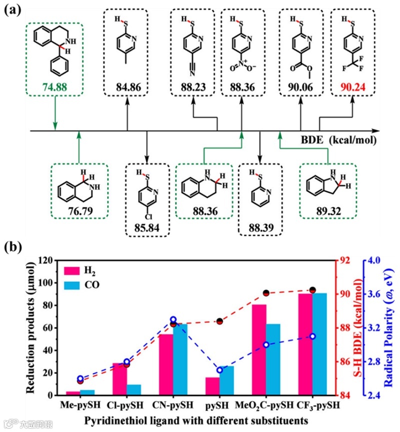 图3. 催化性能与吡啶硫醇S-H BDE及自由基极性之间的正相关性