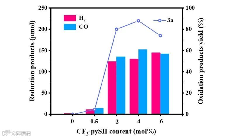 图4. 吡啶硫醇(CF3-pySH)的量对反应结果的影响
