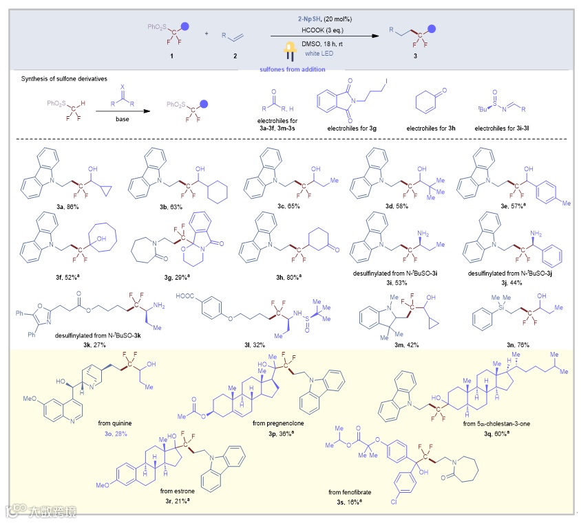 图2. 来自加成反应的苯基砜衍生物的底物范围