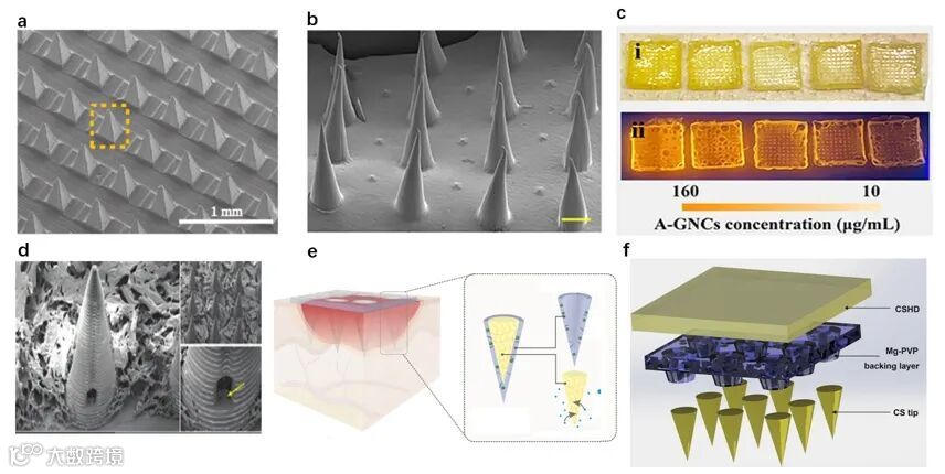 图2. 不同结构的典型微针示意图。