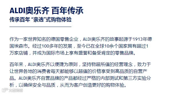 1、2017 年,奥乐齐正式进入中国,“奥乐齐”被确定为“ALDI”的正式中文名称。