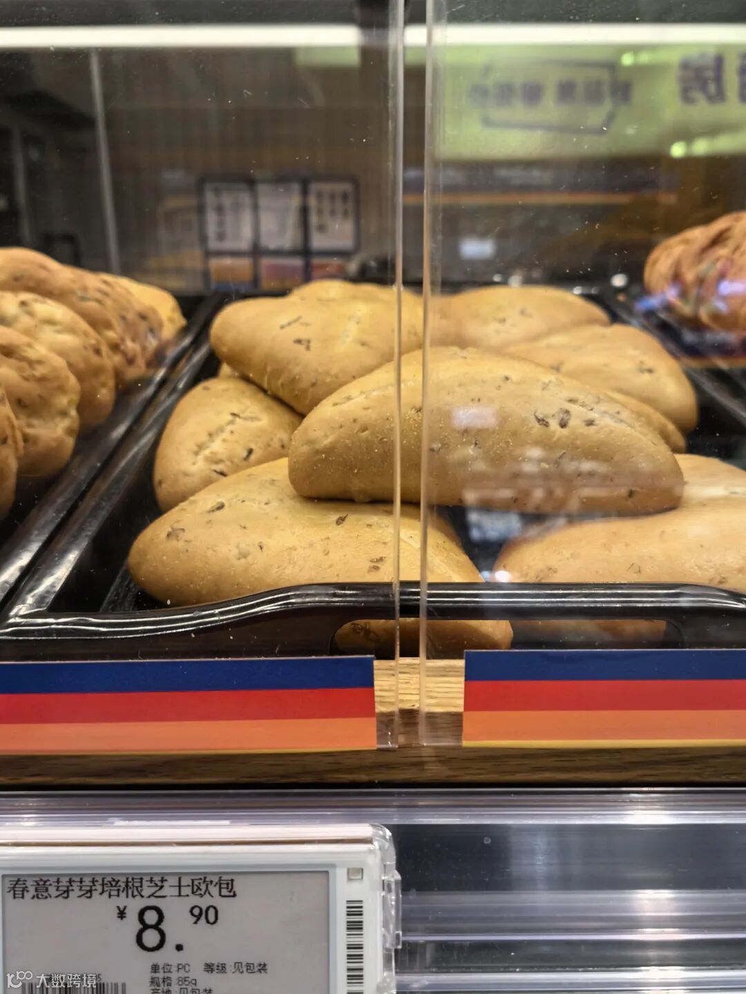 其不同于山姆的堆头如山美式大批量采购,也不同于盒马生鲜门店脱胎于传统烘焙店的模式(直接把烘焙店的作为一个大的SKU搬到门店的某个区域)。奥乐奇更多的是基于自己的品牌基因和市场策略以及面对不同门店区域的消费者在打造一个:以家庭消费为核心,以餐食化而非零食化、休闲化的烘焙售卖板块。