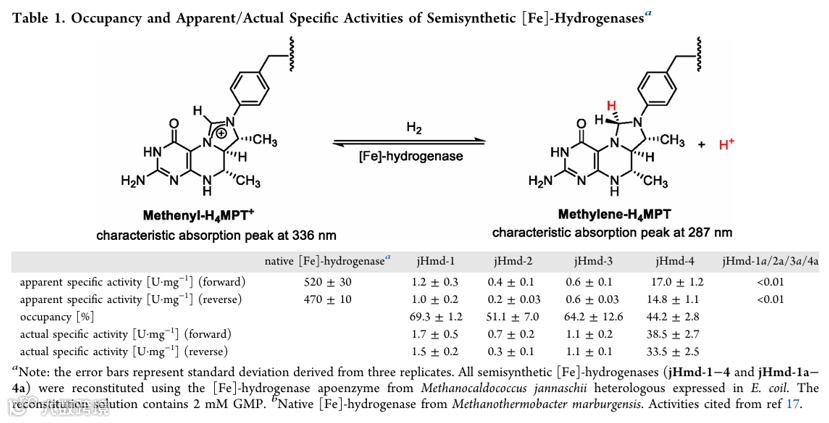 表1. 人工半合成单铁氢酶的活性。图片来源:J. Am. Chem. Soc.