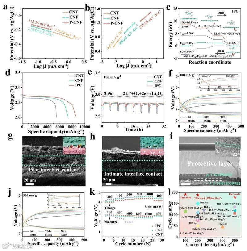 图2. IPC基锂氧气电池的电化学性能。图片来源:Angew. Chem. Int. Ed.