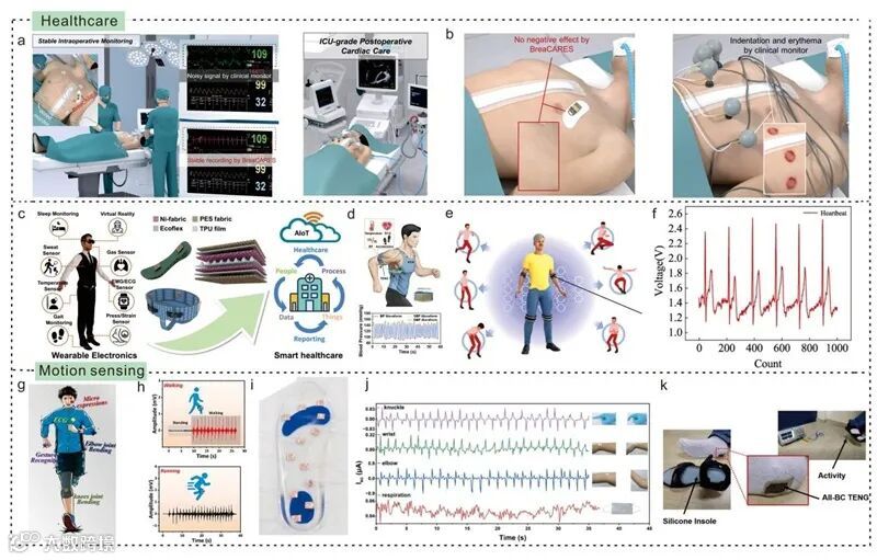 图10. 可穿戴电子皮肤在医疗保健和运动传感中的应用