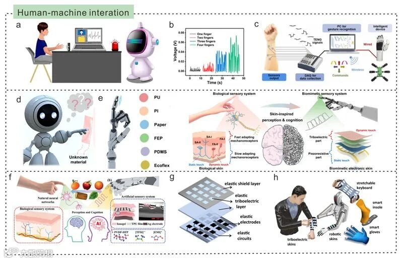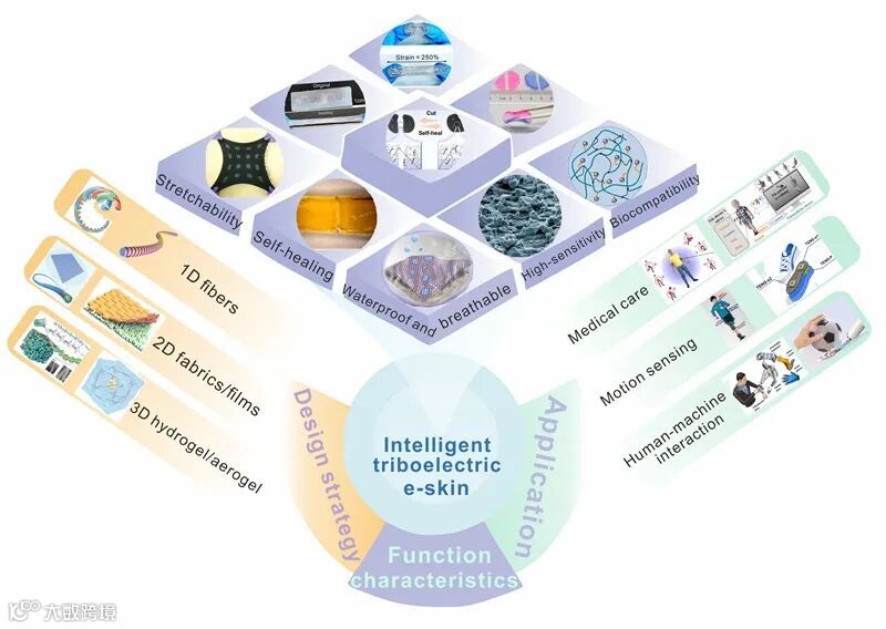 图1. 用于电子皮肤的智能摩擦电材料的设计策略、功能特性和应用示例