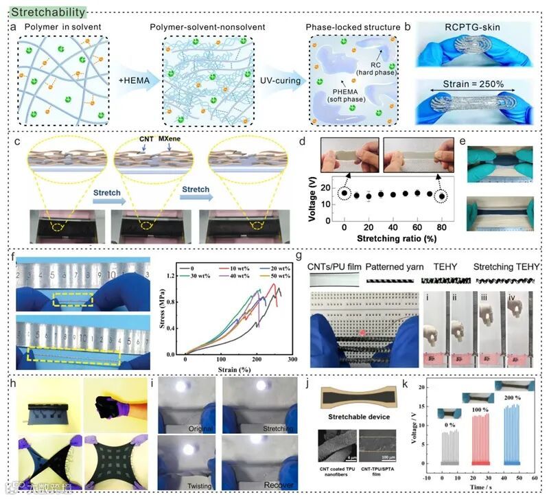 图5. 摩擦电材料的可拉伸特性