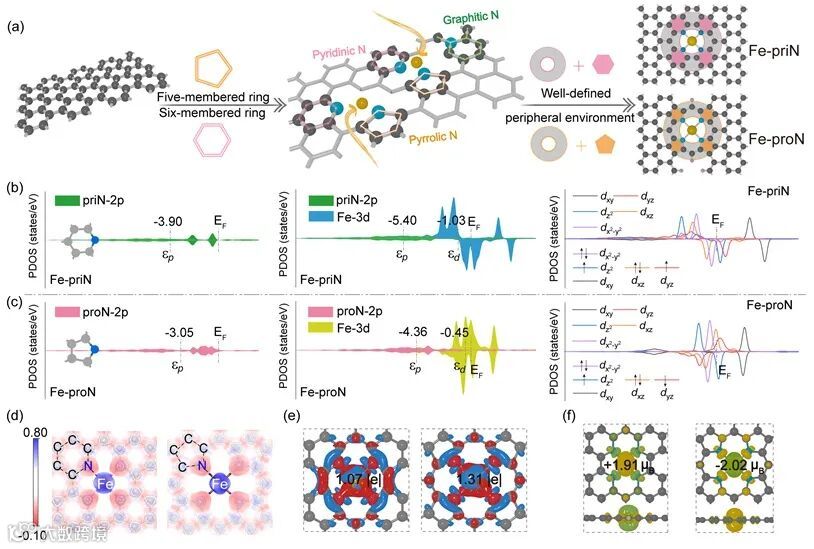 图1. Fe-priN和Fe-proN催化剂的设计策略及电子结构分析