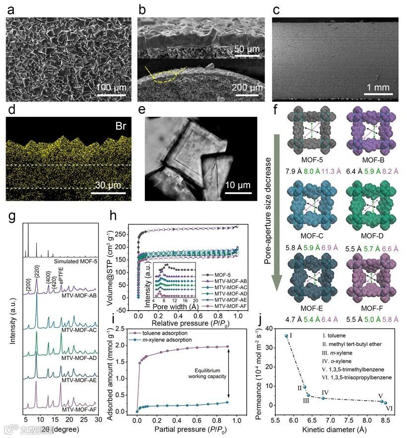 图3. MTV-MOF中空纤维膜的形貌和吸附性能研究