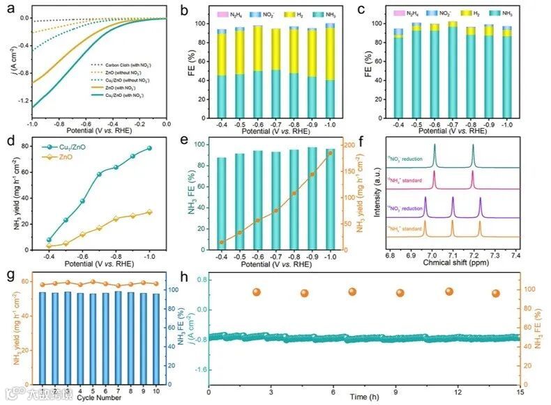 图2. NO3RR活性及催化稳定性