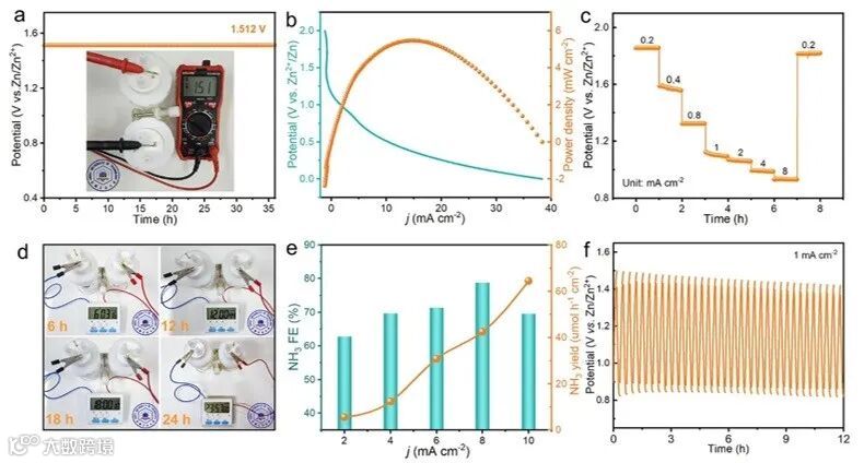 以Cu1/ZnO催化剂为阴极组装的可充电Zn-NO3-电池具有优异的性能,可以稳定的输出1.51 V开路电压和高达5.5 mW cm-2的峰值功率密度。