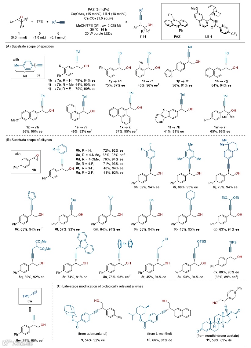图3. 不对称氢炔化底物拓展。图片来源:JACS