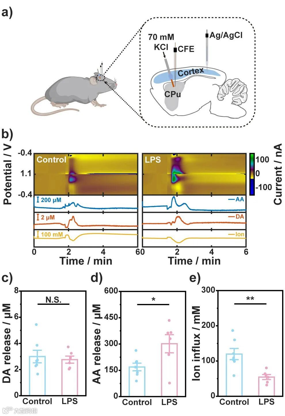 图2. 利用CIGNN模型同时检测小鼠纹状体内DA、AA和离子强度的变化。图片来源:J. Am. Chem. Soc.