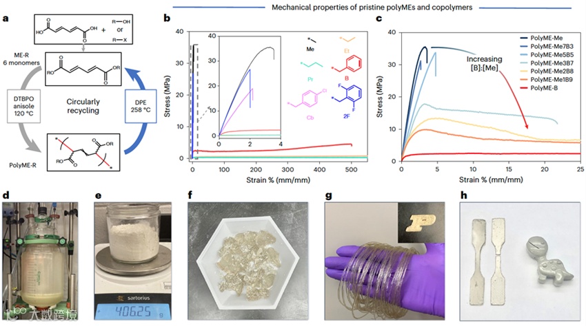 图5. PME-基聚合物的力学性能调控以及放大制备。图片来源:Nat. Chem. Eng.