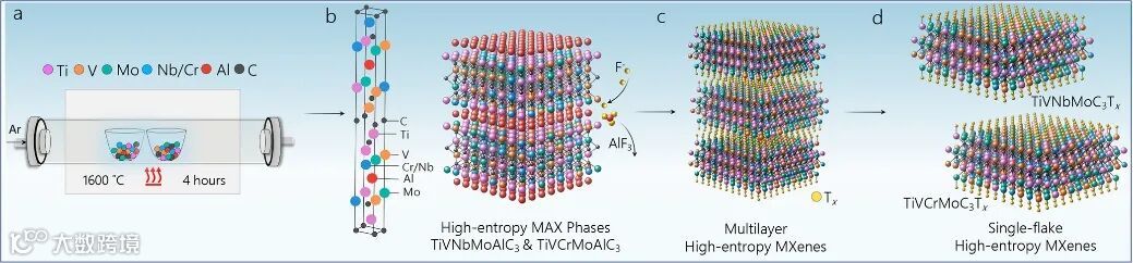 高熵MAX和MXenes合成示意图。图片来源:ACS Nano [7]