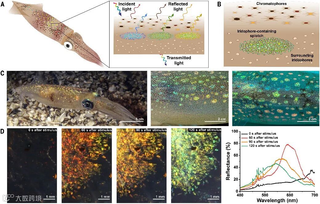 乌贼背部虹彩细胞与组织层级结构。图片来源:Science