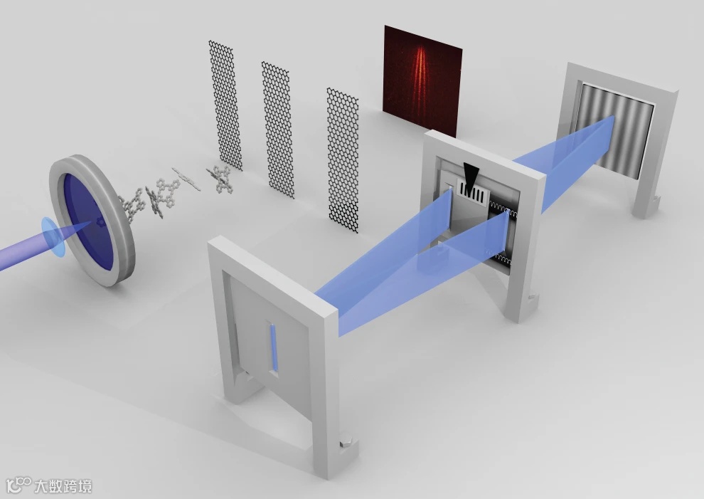 酞菁分子穿过石墨烯的双缝干涉实验。图片来源:Nat. Nanotechnol.[6]