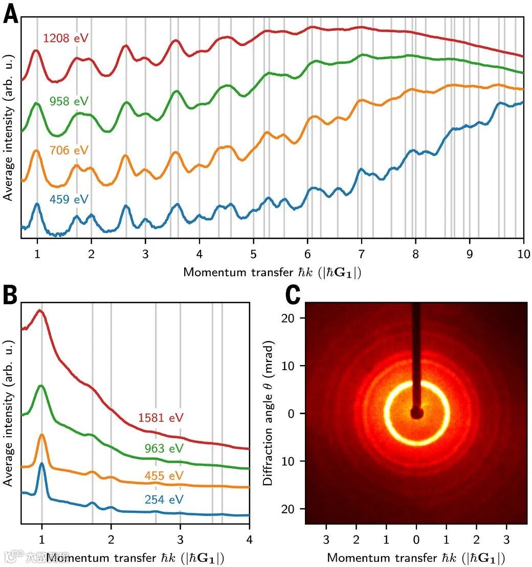 单层石墨烯的能量依赖性原子衍射。图片来源:Science