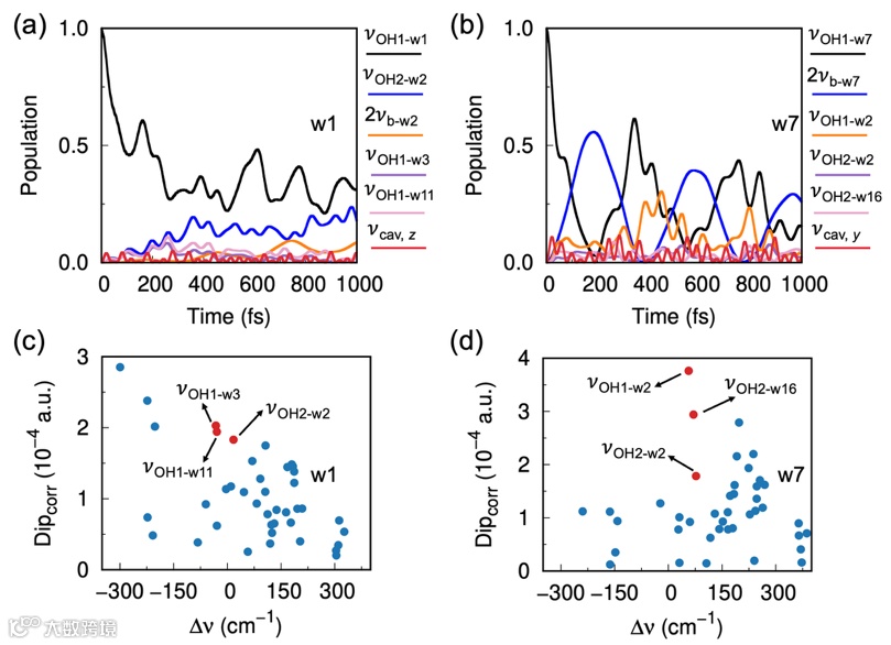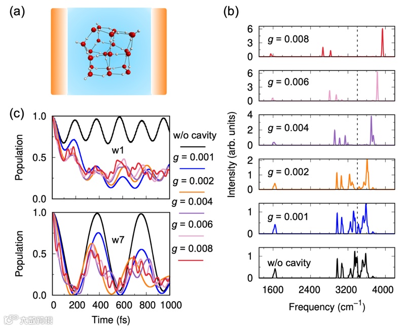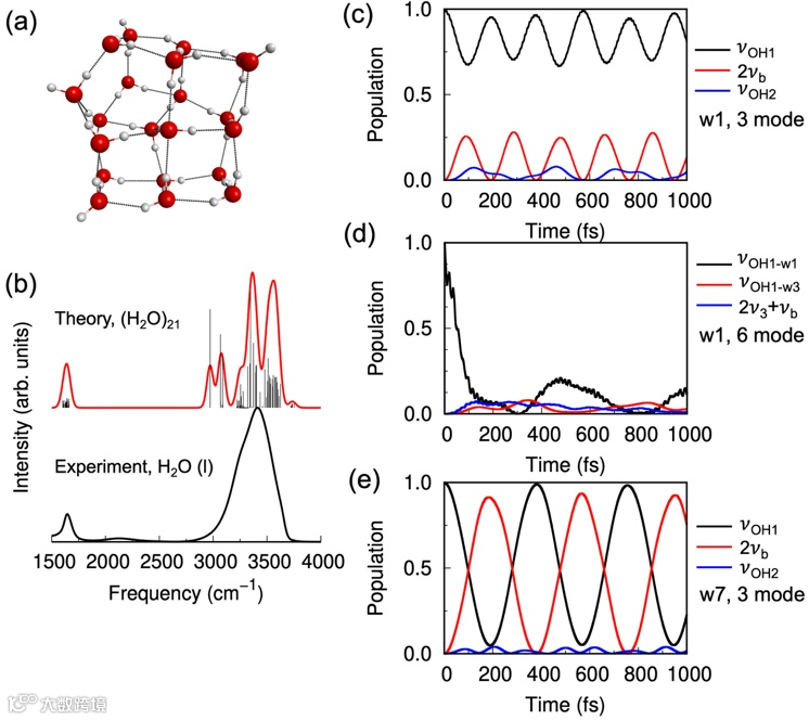 图1. 光学微腔外(H2O)21的振动光谱和OH伸缩振动布居动力学。图片来源:Nat. Commun.