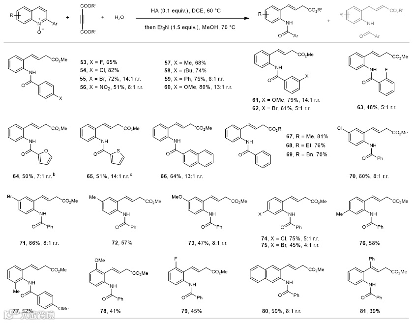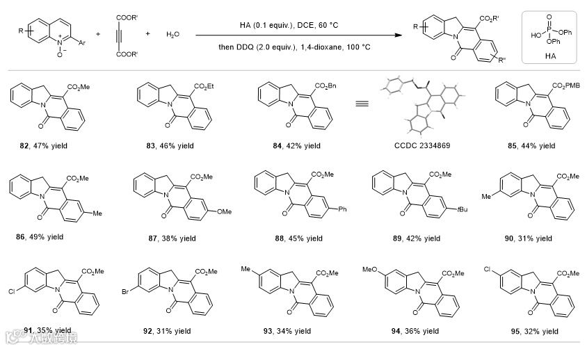 图4. 喹啉骨架编辑异喹啉酮的底物范围