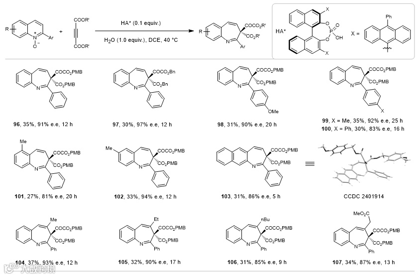 图5. 喹啉对映选择性催化骨架编辑制备苯并氮杂䓬的底物范围