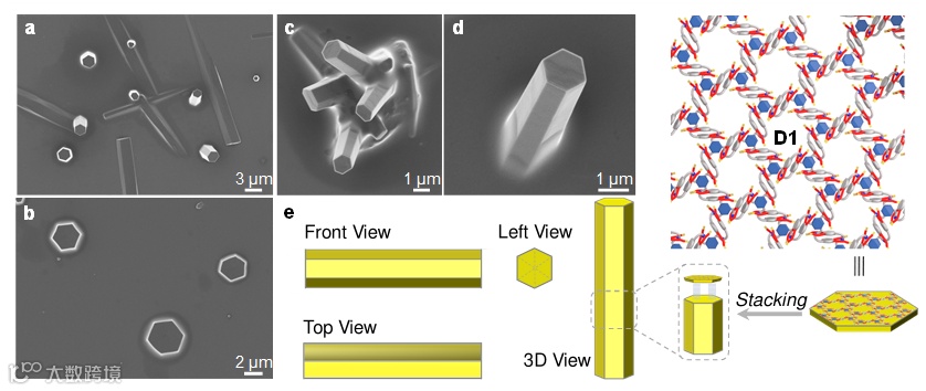 图2. D1层层堆叠示意图以及六棱柱形貌
