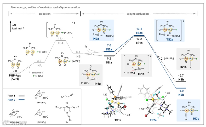 图6. 理论计算—催化剂氧化与炔烃活化