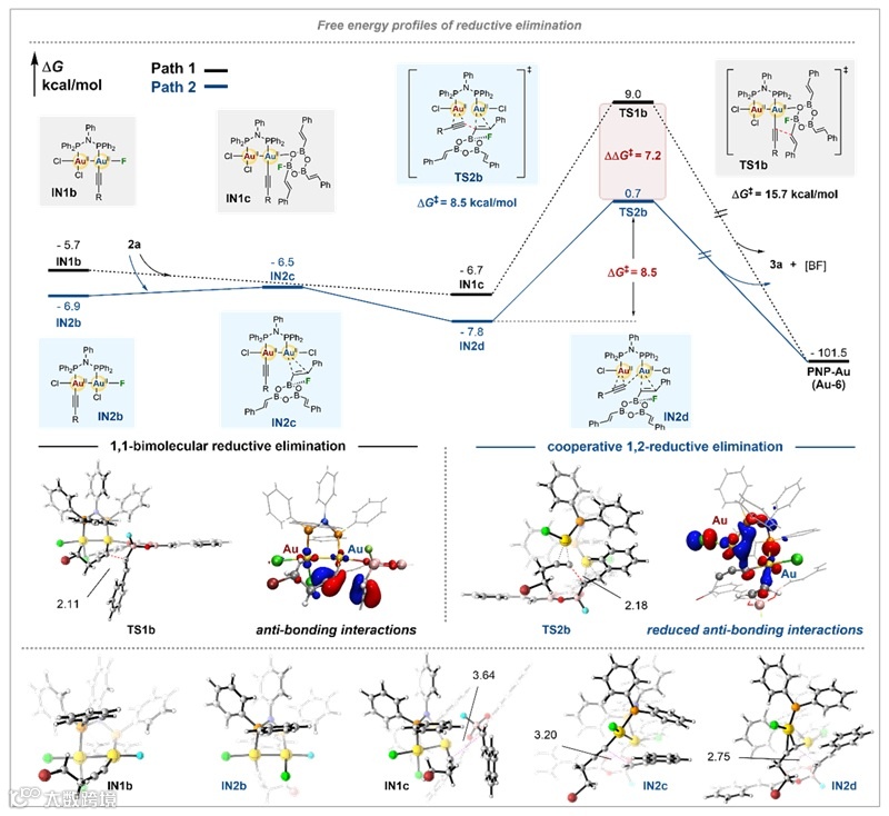 图7. 理论计算—1,1-双分子还原消除与协同1,2-还原消除