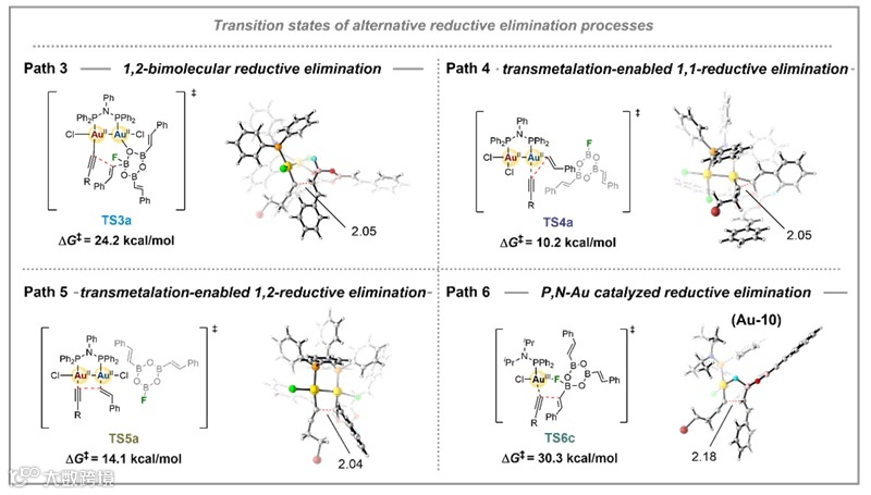 图8. 理论计算—其他可能的双核金催化路径与P,N-Au催化计算
