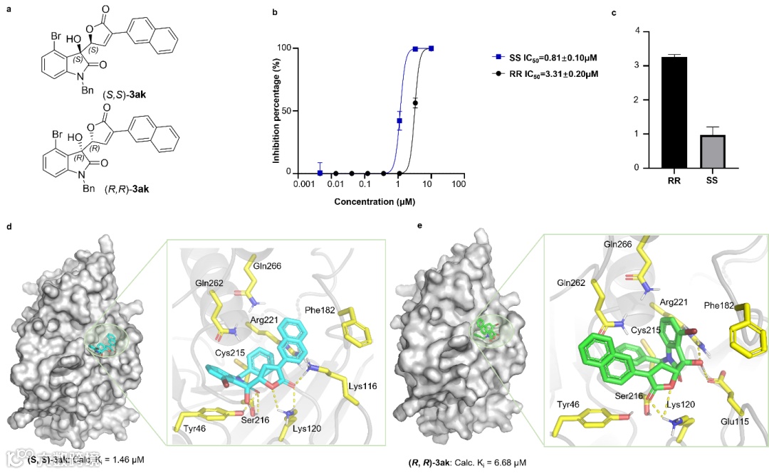 通过虚拟筛选和生物评估,发现 (S, S)-3ak 为亚微摩级 PTP1B 抑制剂,对映体活性差异达3倍。