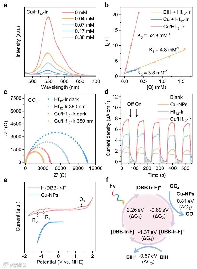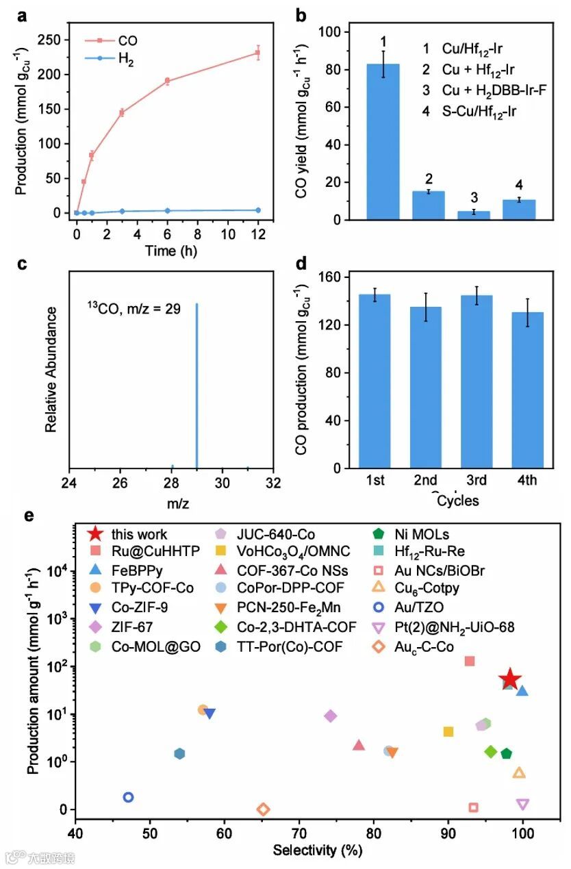 图3. Cu/Hf12-Ir光催化二氧化碳还原活性表征。