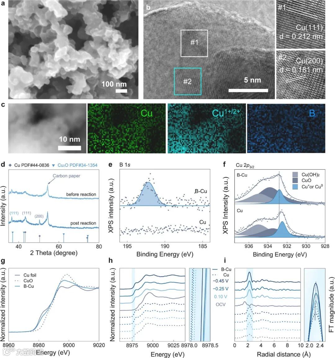 图3. 硼掺杂铜催化剂的结构表征