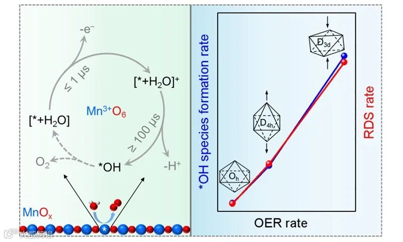 TOC图 OER第一步中间物种*OH的微观动力学形成机制及活性位电子构型对称性在OER动力学中的决定性作用。