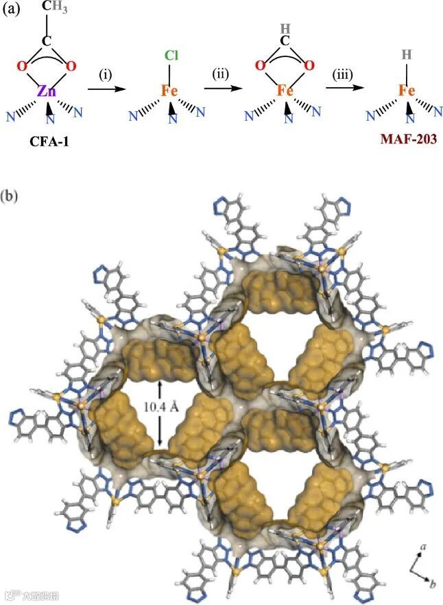 导读:中山大学廖培钦团队设计了一种新型Fe(II)基MOF材料MAF-203,其中含有四面体形FeIIHN3活性位点,是一种具有明确Fe−H键的配位结构
