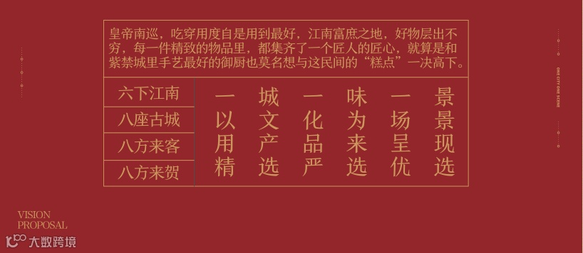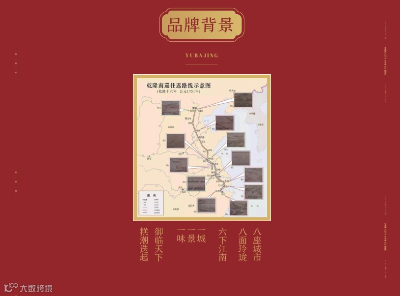 以乾隆下江南路线图作为文化轨迹,探寻八个城市的糕点饮食秘籍;以皇帝、巡游、江南、饮食等关键词串起“御八景”的文化脉络。