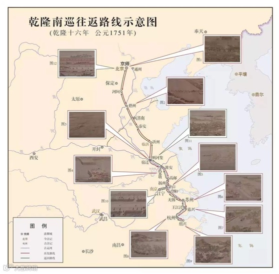 “御八景”的故事构建立足于此,“御”者,皇帝也,八景从“乾隆南巡图”中选取八个风景名胜之地:临清、