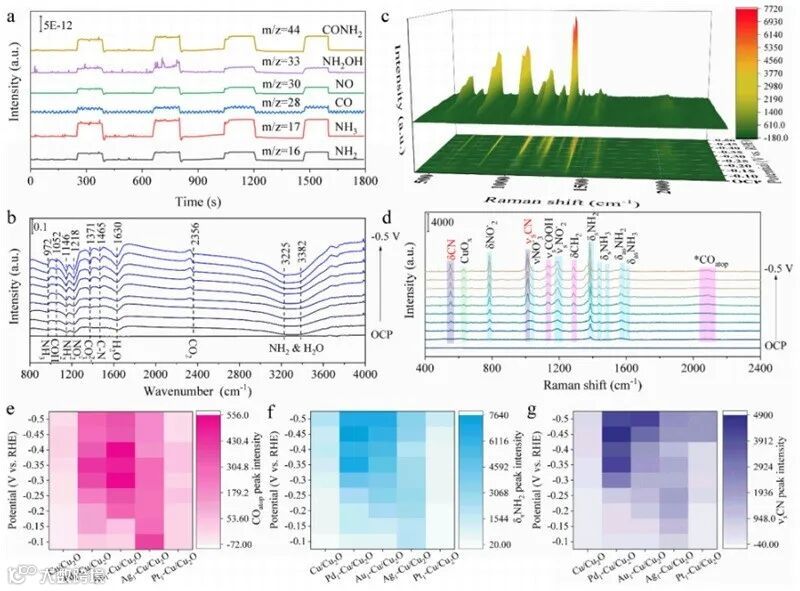 原位光谱分析结合理论计算表明,Pd-Cu双位点能够平衡关键中间体CO和NH2的生成,同时显著降低CONH2和NH2CONH2形成的反应能垒,从而在热力学和动力学上显著促进C-N耦合反应的进行。